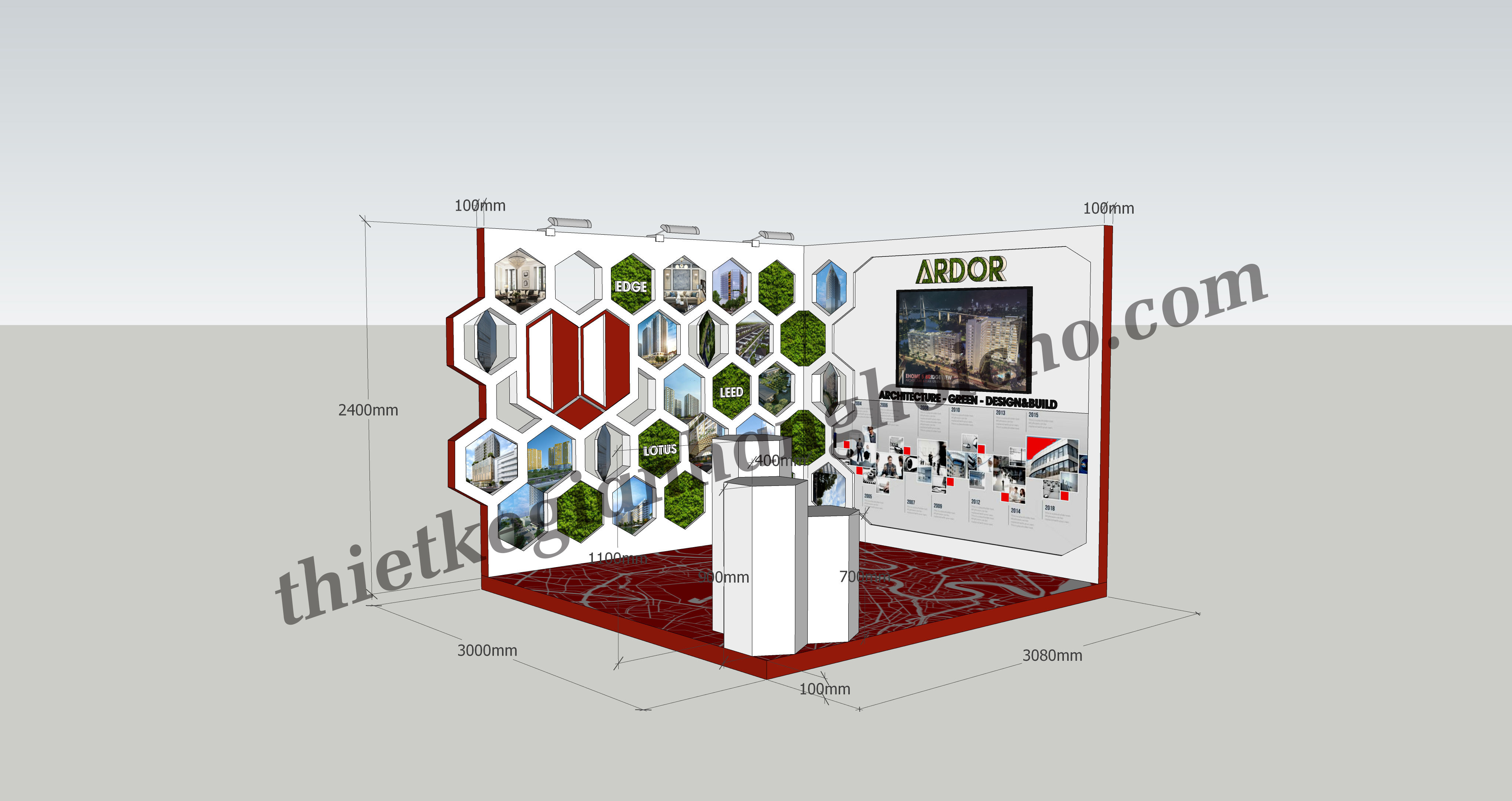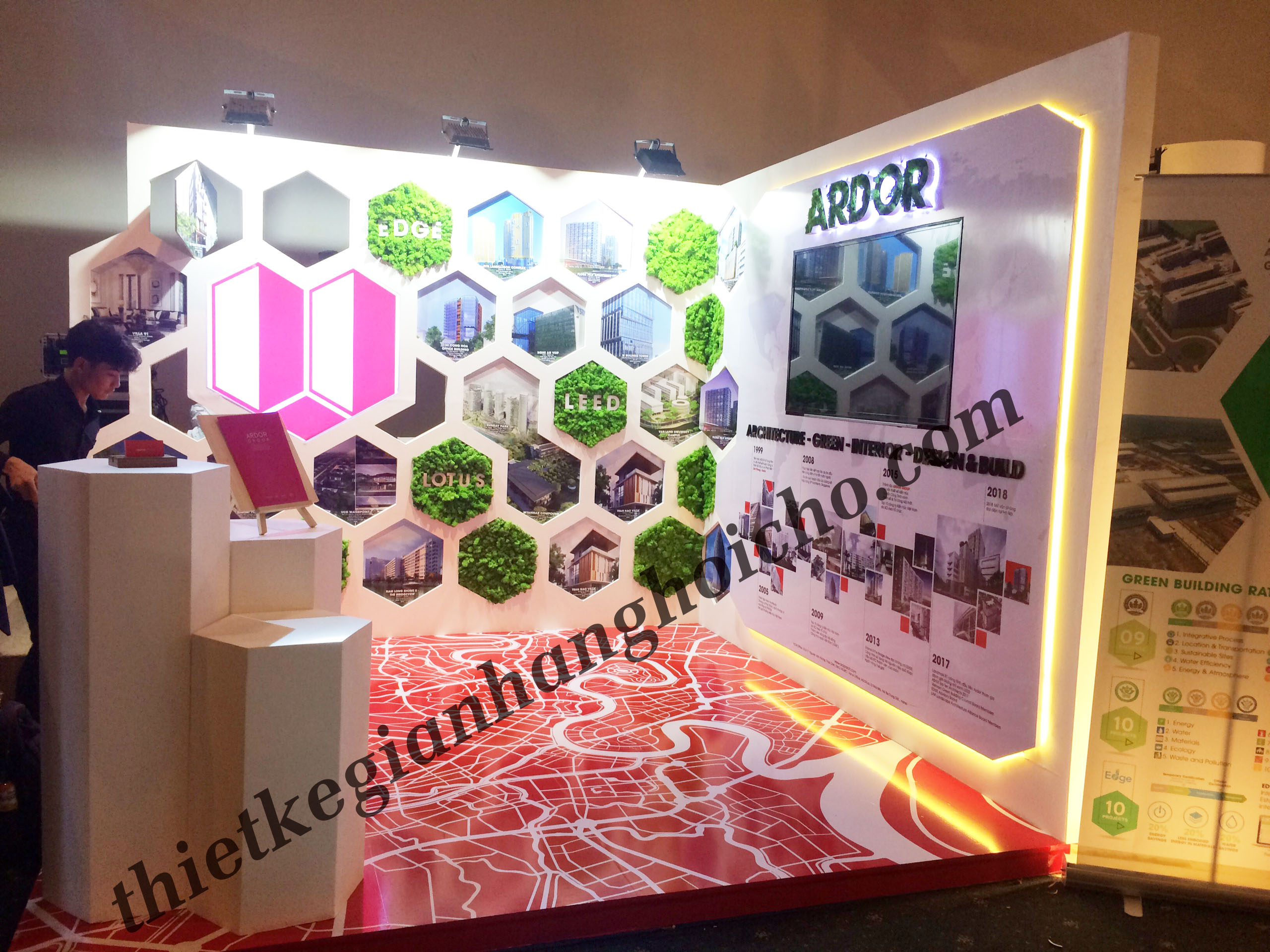 Ardor Green đã tham gia triển lãm về công trình và kiến trúc. Với mong muốn xây dựng môi trường sinh thái xanh sạch và phát triển bền vững. Ardor đã xuất hiện tại triển lãm với kiến trúc công trình xanh. Hiểu được ý của khách hàng, VietArt đã xây dựng gian hàng cho Ardor sử dụng các vật liệu tự mang tính xanh và sạch. Booth Ardor được xây dựng với cấu trúc khá đặc biệt. Sử dụng khoét lỗ lục giác. Bên ngoài ốp cỏ và hình ảnh các công trình nhằm thể hiện được sứ mệnh của Ardor mang môi trường xây dựng bền vững đi khắp nơi. Sau kết thúc triển lãm, Ardor có phản hồi rất trân trọng đội ngũ nhân viên VietArt. Tuy thời gian thi công bị giới hạn, và có nhiều vấn để xảy ra nhưng VietArt luôn nhanh chóng có giải pháp về quy cách sản xuất, thời gian thi công và giải quyết khó khăn ngay tại chỗ.