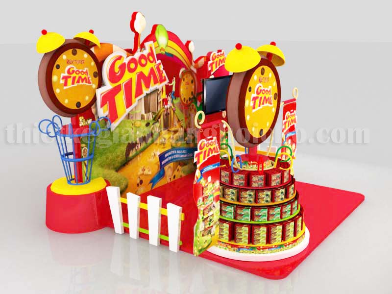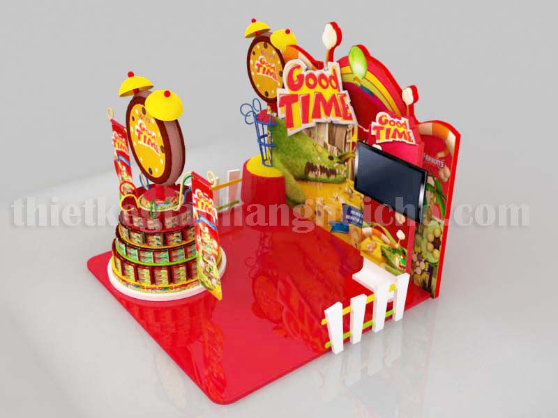 Booth quảng cáo gian hàng thường có kích thước nhất định. Tùy vào không gian chung của siêu thị, hội chợ triển lãm. Booth triển lãm độc đáo sẽ giúp cho thương hiệu được nhận diện nhanh chóng. Hội chợ triển lãm hay hội chợ thương mại diễn ra sôi nổi hàng năm tại khu vực TP.HCM. Bởi lẻ giá trị marketing thương hiệu và hiệu quả bán hàng tăng nhanh.