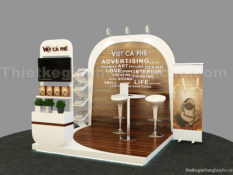 Booth cực chất của Việt Cà Phê là sản phẩm độc đáo mà Viet Art đã thực hiện.Với nhiều năm kinh nghiệm thiết kế booth, gian hàng cho các nhãn hiệu lớn. Chúng tôi hiểu rõ vấn đề của bạn khi thực hiện một chiến dịch marketing. Lập một thời gian biểu chặt chẽ, luôn bám sát deadline. Loại bỏ những khoảng thời gian trao đổi cứng nhắc vô ích bằng những thảo luận và phác thảo ngay tại chỗ nhằm hiểu chính xác vấn đề mà thiết kế cần phải giải quyết, đi đến thiết kế sáng tạo và định hướng đúng mục tiêu. Đó là cách chúng tôi mang đến bạn sự an tâm, giảm áp lực trong một núi công việc cần phải làm trong chiến dịch của bạn.