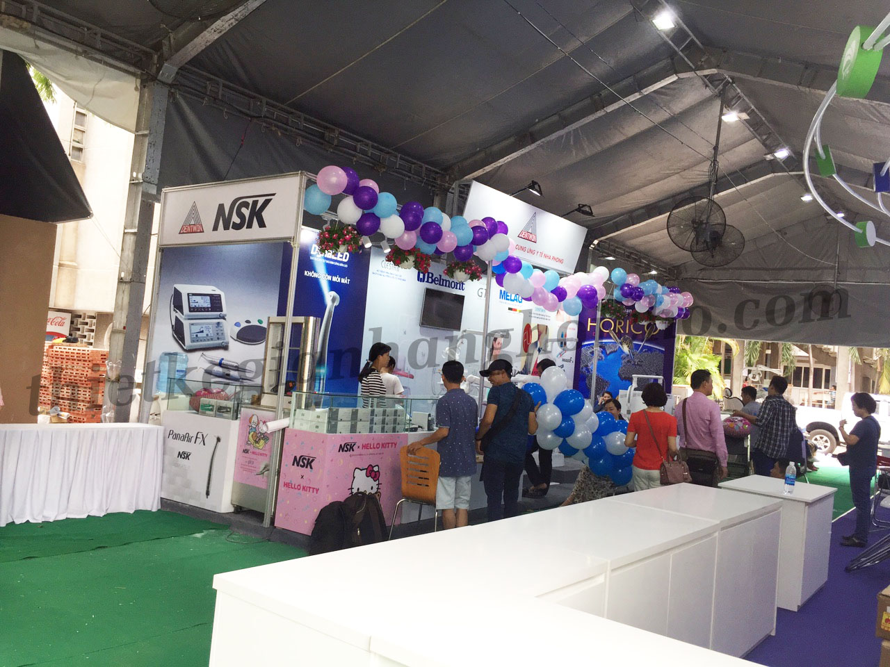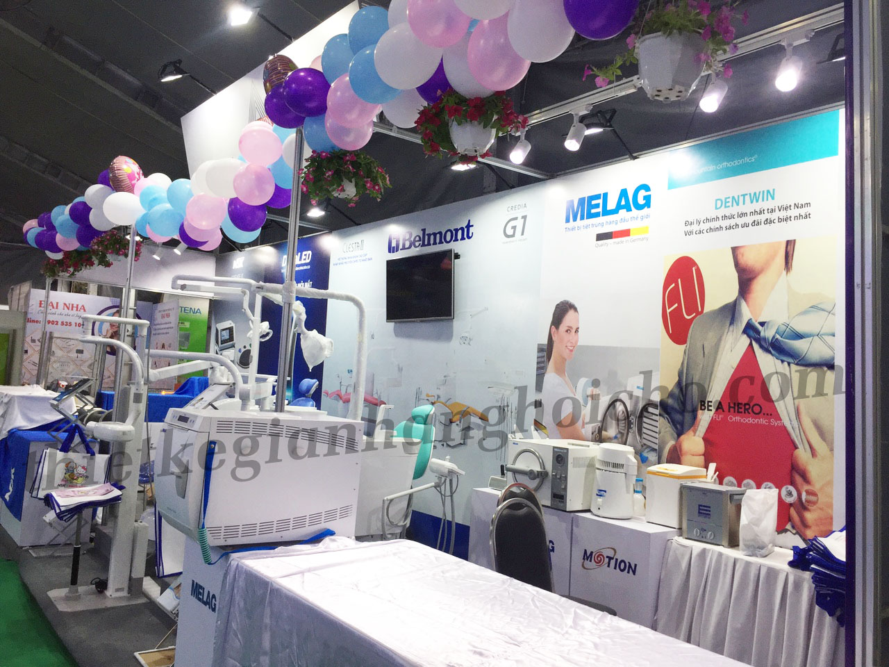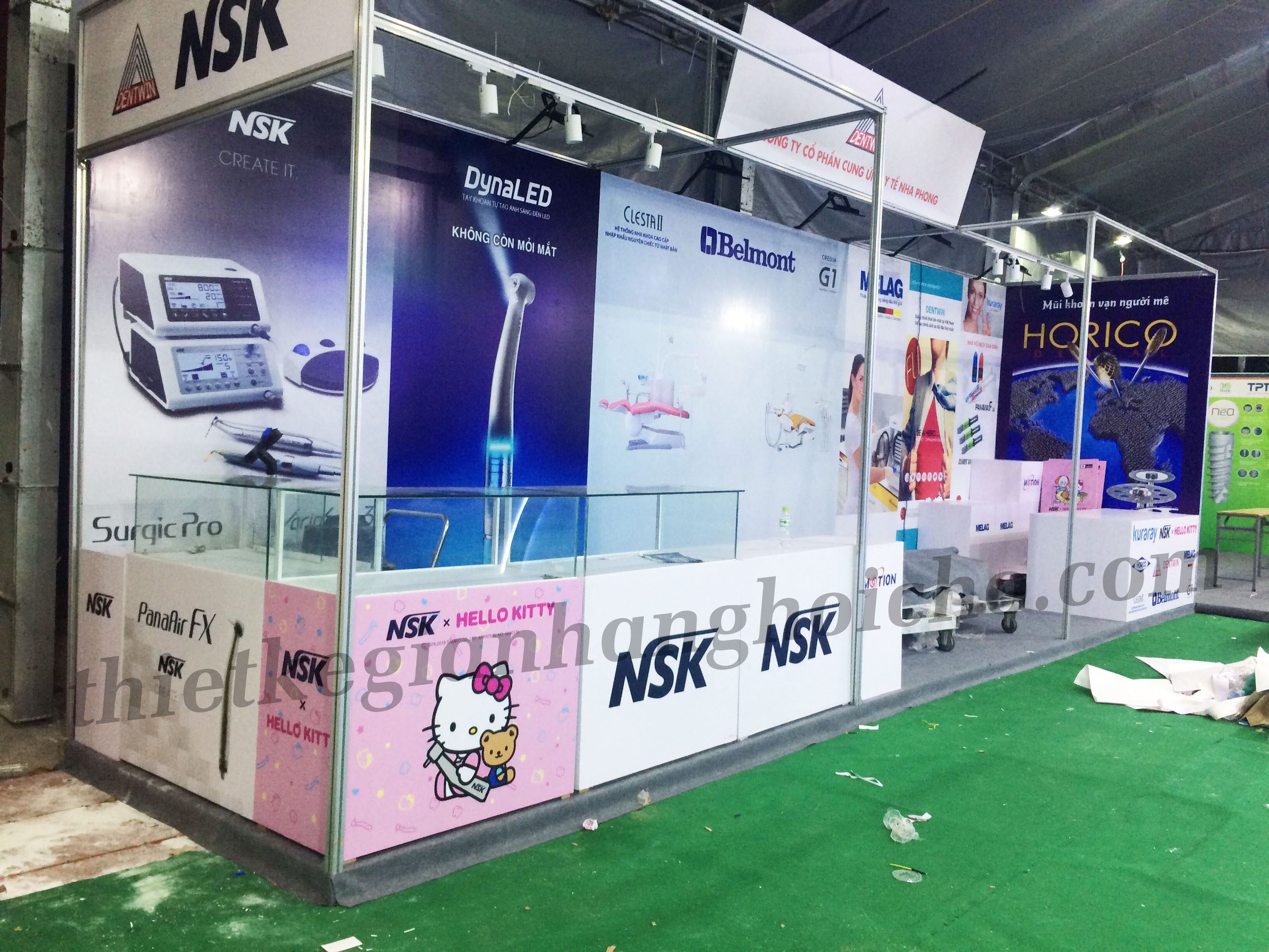 Vào cuối tháng 3, Nha Phong đã tham gia triển lãm ngành y học tại Đại học Y Dược Tp. Hồ Chí Minh. Với diện tích đất trống 2x9m. Nha Phong đã liên hệ VietArt để thiết kế và thi công gian hàng. Do máy móc thiết bị dụng cụ khá nhiều nên tiêu chí mà Nha Phong đặt ra ngay từ đầu là đẹp, chất lượng và phải thi công trong thời gian ngắn. Hiểu được tiêu chí đó, Viet Art đã đưa ra giải pháp thiết kế và thi công dựng gian hàng bằng hệ khung nhôm. Hệ nhôm định hình thì không còn mới mẻ. Nhưng áp dụng hệ khung nhôm vào trong gian hàng không chỉ vừa tiện vừa rẻ mà lại còn thể hiện được tính cao cấp của gian hàng và khác biệt thì đòi hỏi sự tính tooán khéo léo.