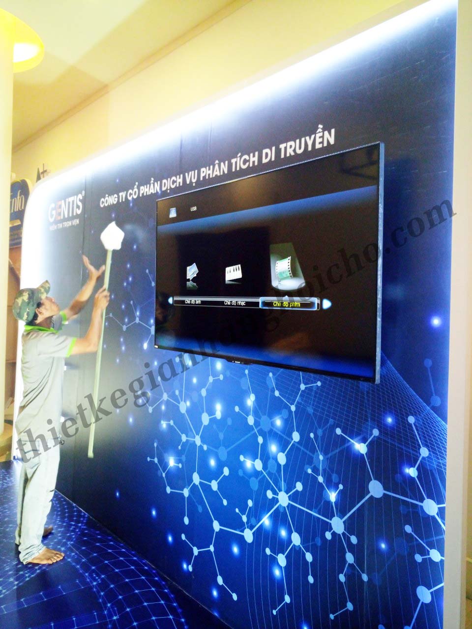 Vừa qua, Gentis đã có tham gia 1 sự kiện liên quan đến ngành phân tích di truyền. Tại đây, Gentis đã xuất hiện với một gian hàng theo chủ đề về di truyền. Gentis đã liên hệ VietArt để lên phương án sản xuất gian hàng. Với đội ngũ thiết kế chuyên nghiệp đi cùng với nhân công xưởng đầy kinh nghiệm. VietArt đã thi công gian hàng cho Gentis theo đúng tiêu chí mà Gentis đã đề ra ban đầu.