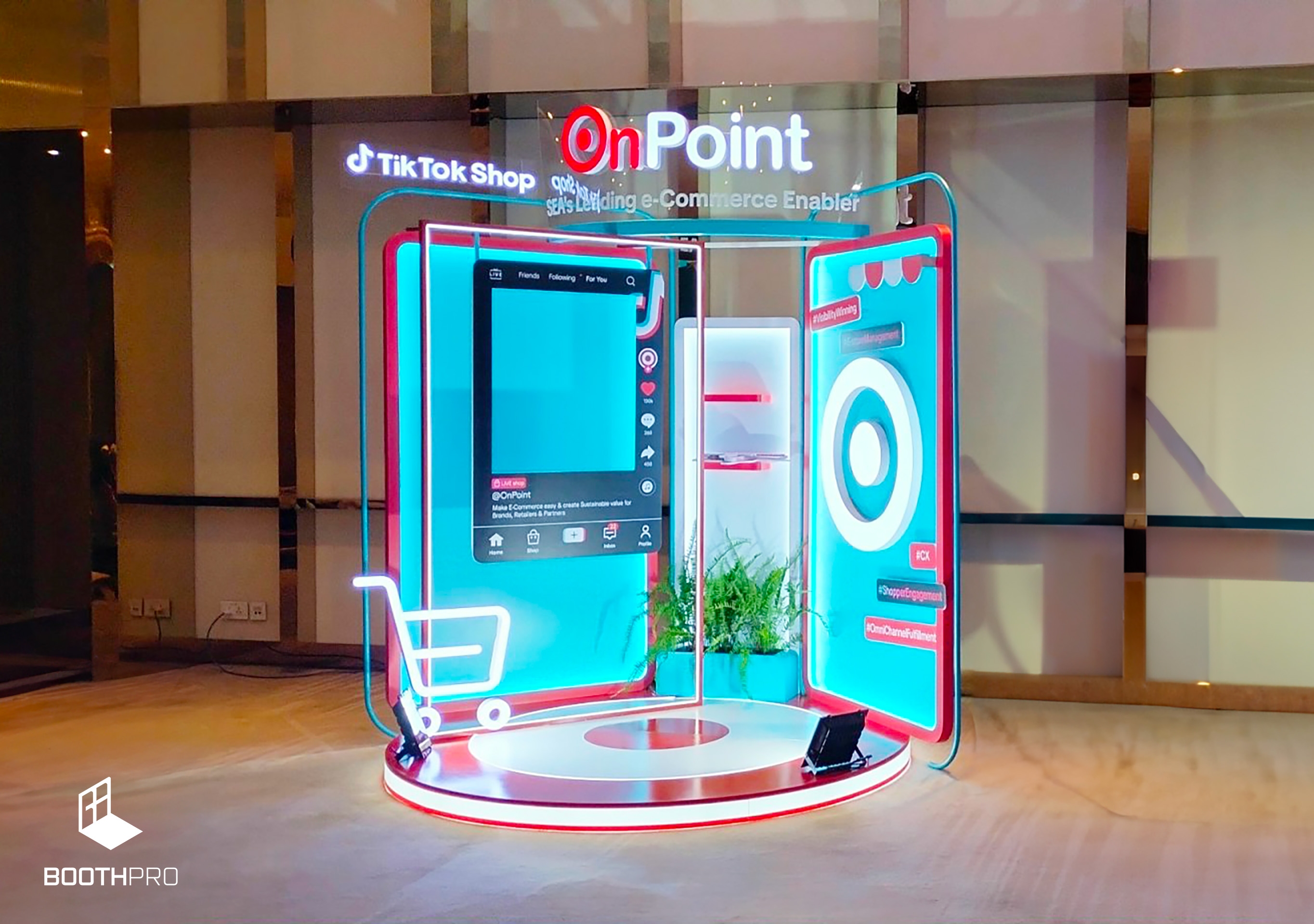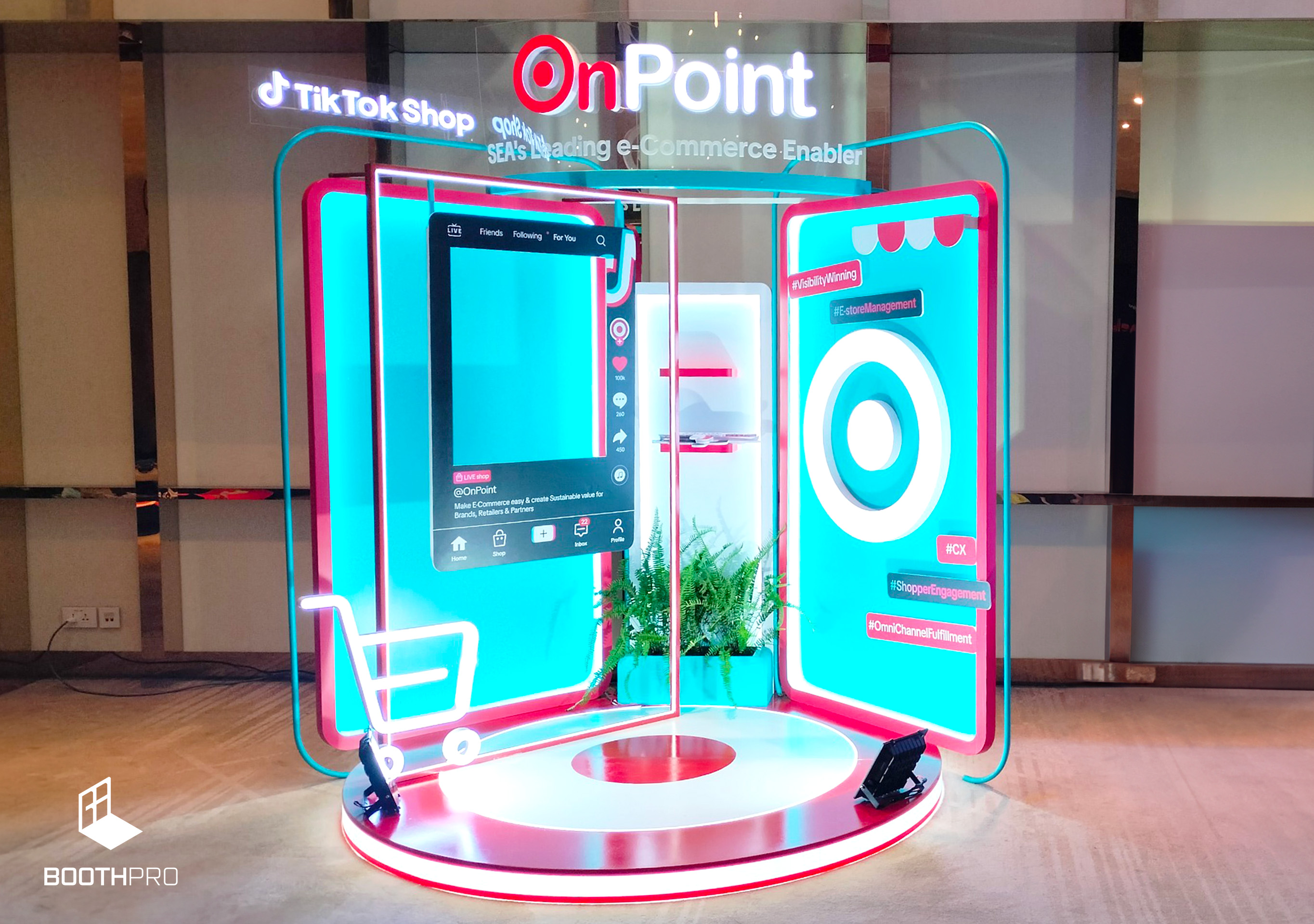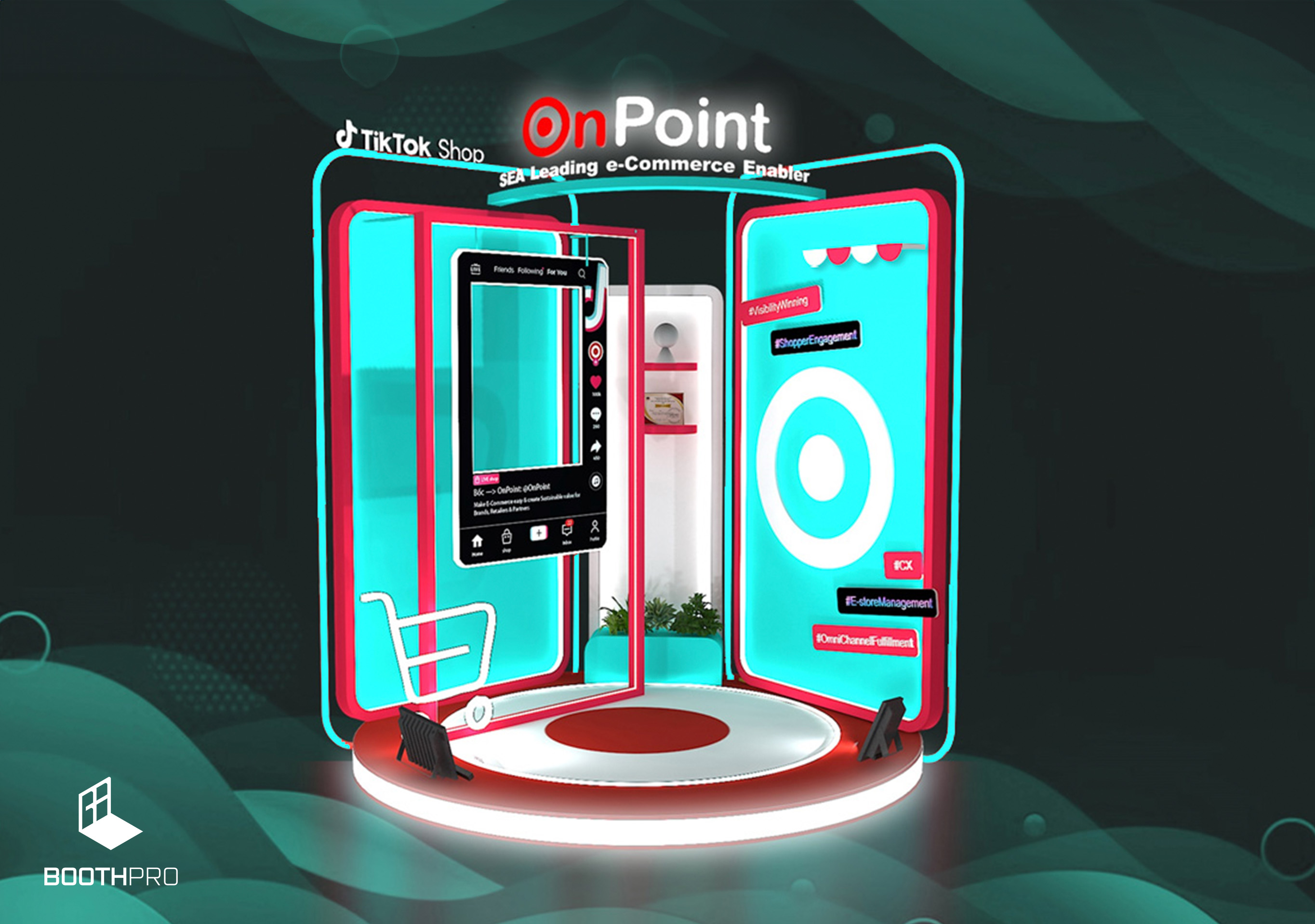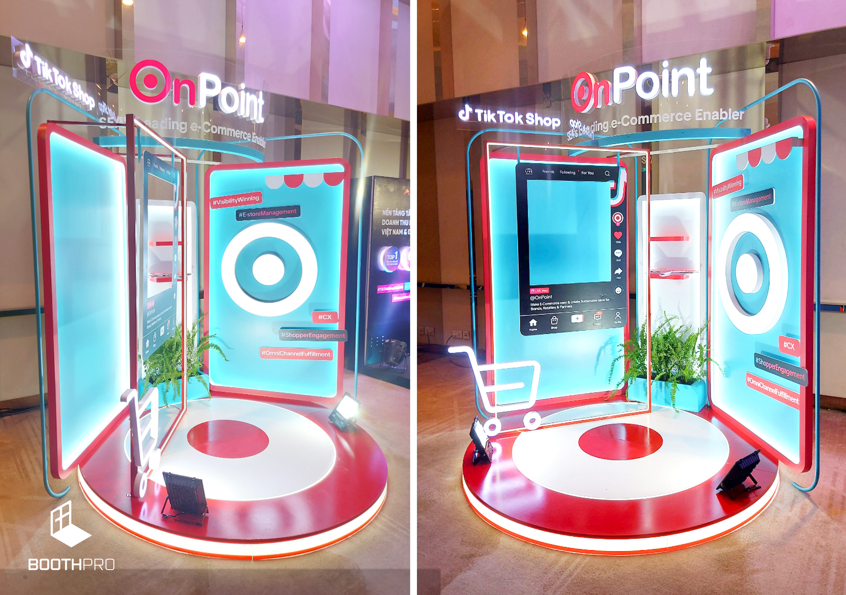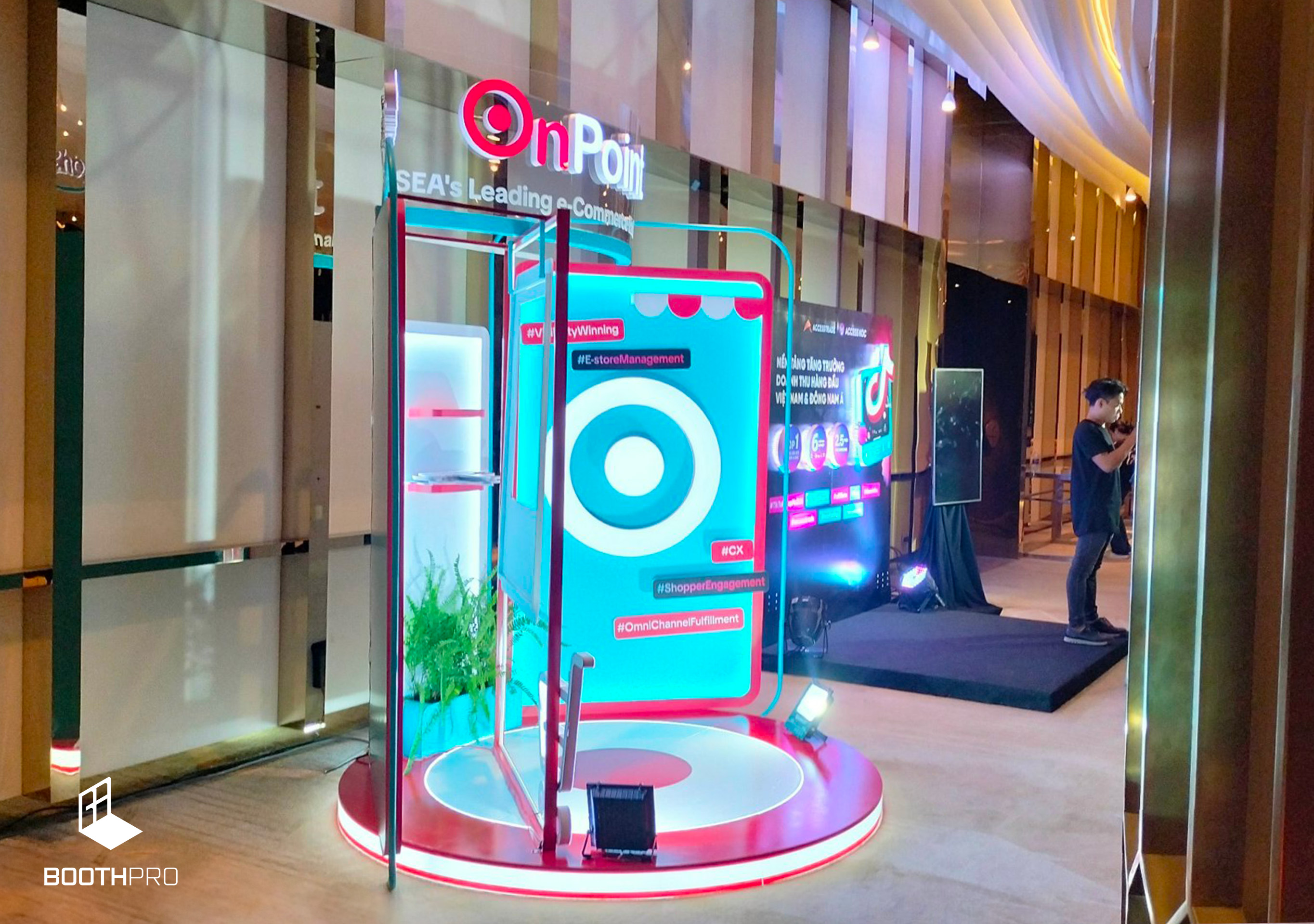 Thiết kế tổng thể của gian hàng OnPoint mang phong cách nhỏ gọn và hiện đại. Dù không lớn nhưng gian hàng được thiết kế sao cho nổi bật và thu hút sự chú ý. Chúng tôi tạo ra một không gian độc đáo và đầy cá nhân, làm nổi bật các sản phẩm và triển lãm.