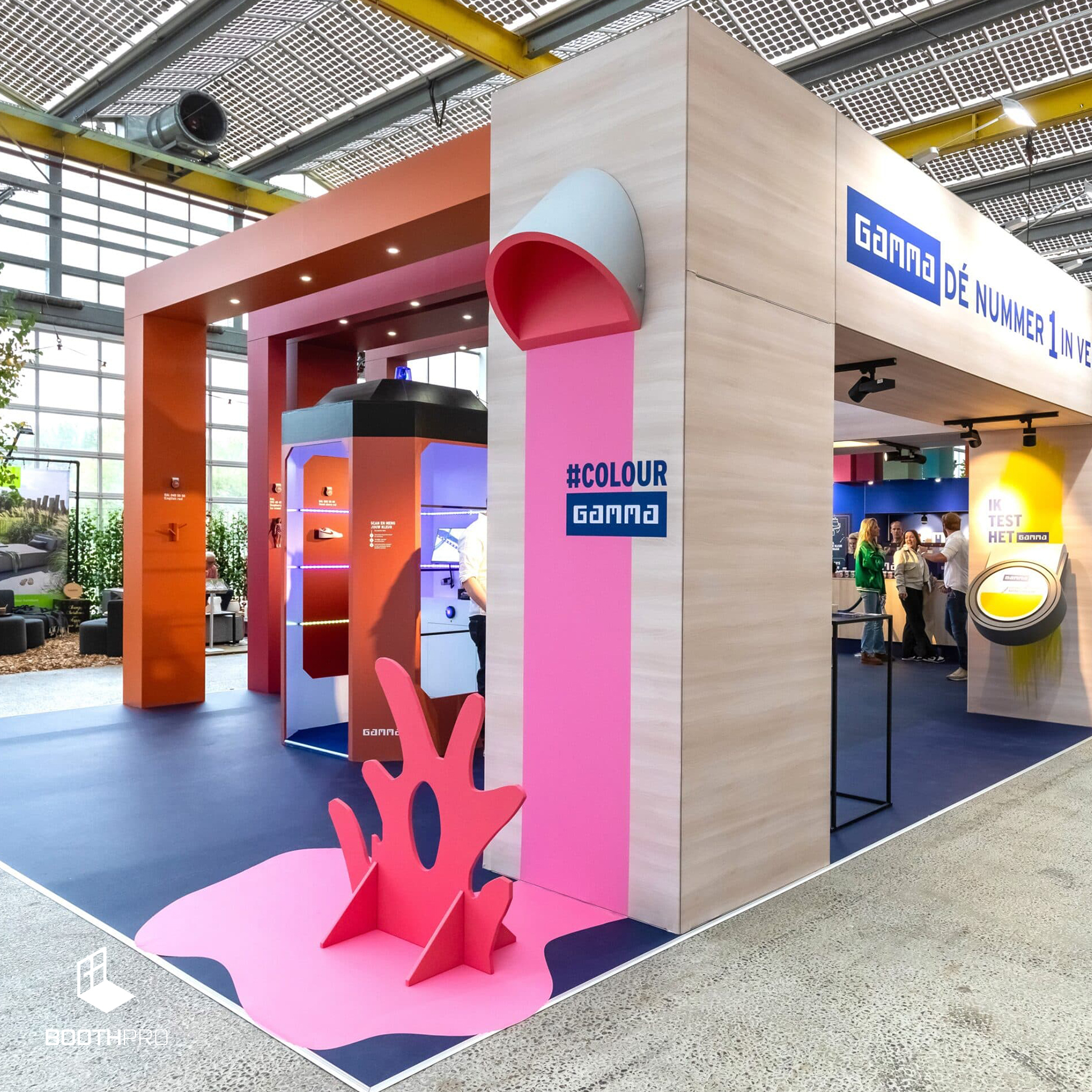 - Màu Sắc Và Ánh Sáng: Sử dụng màu sắc phù hợp với nhận diện thương hiệu kết hợp với ánh sáng tạo điểm nhấn sẽ giúp gian hàng trở nên nổi bật hơn.